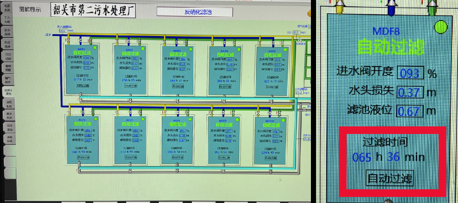 相比原提標(biāo)改造方案,深圳清泉的解決方案能使運(yùn)行成本減少112.2萬元/年,CO2減排量約1600噸/年,而且投資造價節(jié)省了近500萬元;提標(biāo)改造完成后,上向流反硝化濾池反洗周期長達(dá)72小時,反沖洗水耗相比傳統(tǒng)反硝化深床濾池節(jié)省超三分之二,每年節(jié)省水耗量約90萬立方,反洗電耗節(jié)省15萬kWh/年,節(jié)能減碳效果顯著。